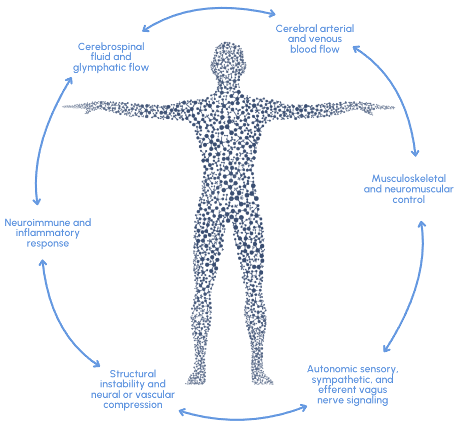 Rather than positioning it as the sole cause of complex disorders, CODA uses craniocervical dysfunction as a human model to investigate shared disease mechanisms. Anchoring multisystem symptoms to a defined structural issue allows researchers to study how disruptions at this junction influence neuroimmune, autonomic, and cognitive function.